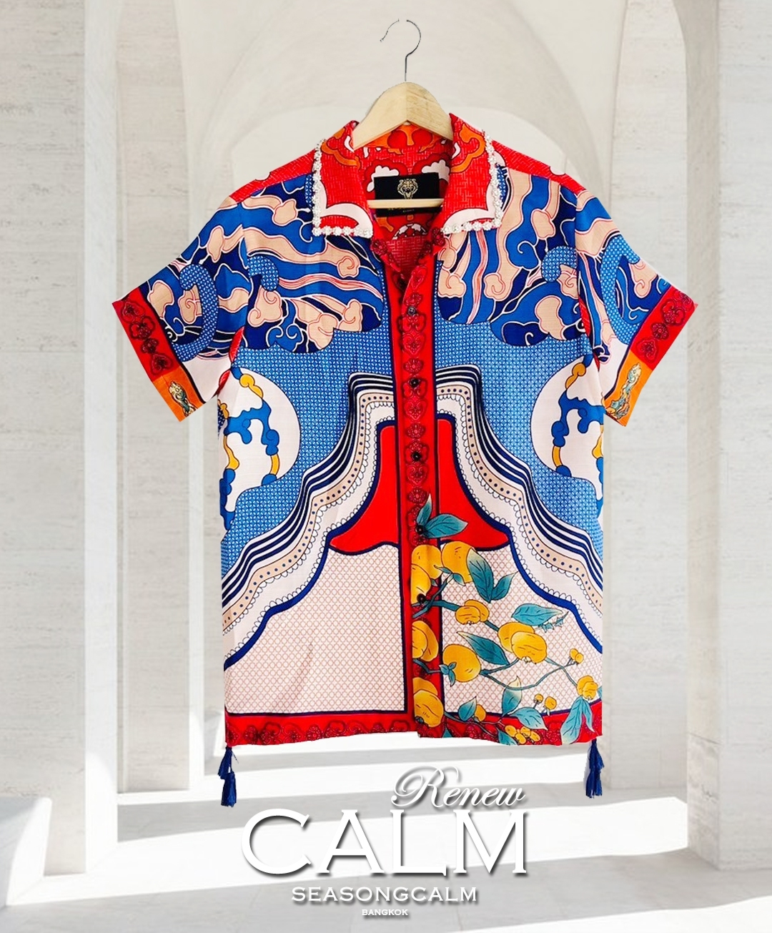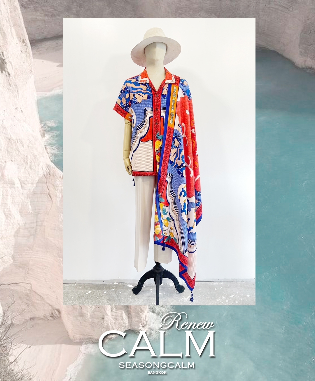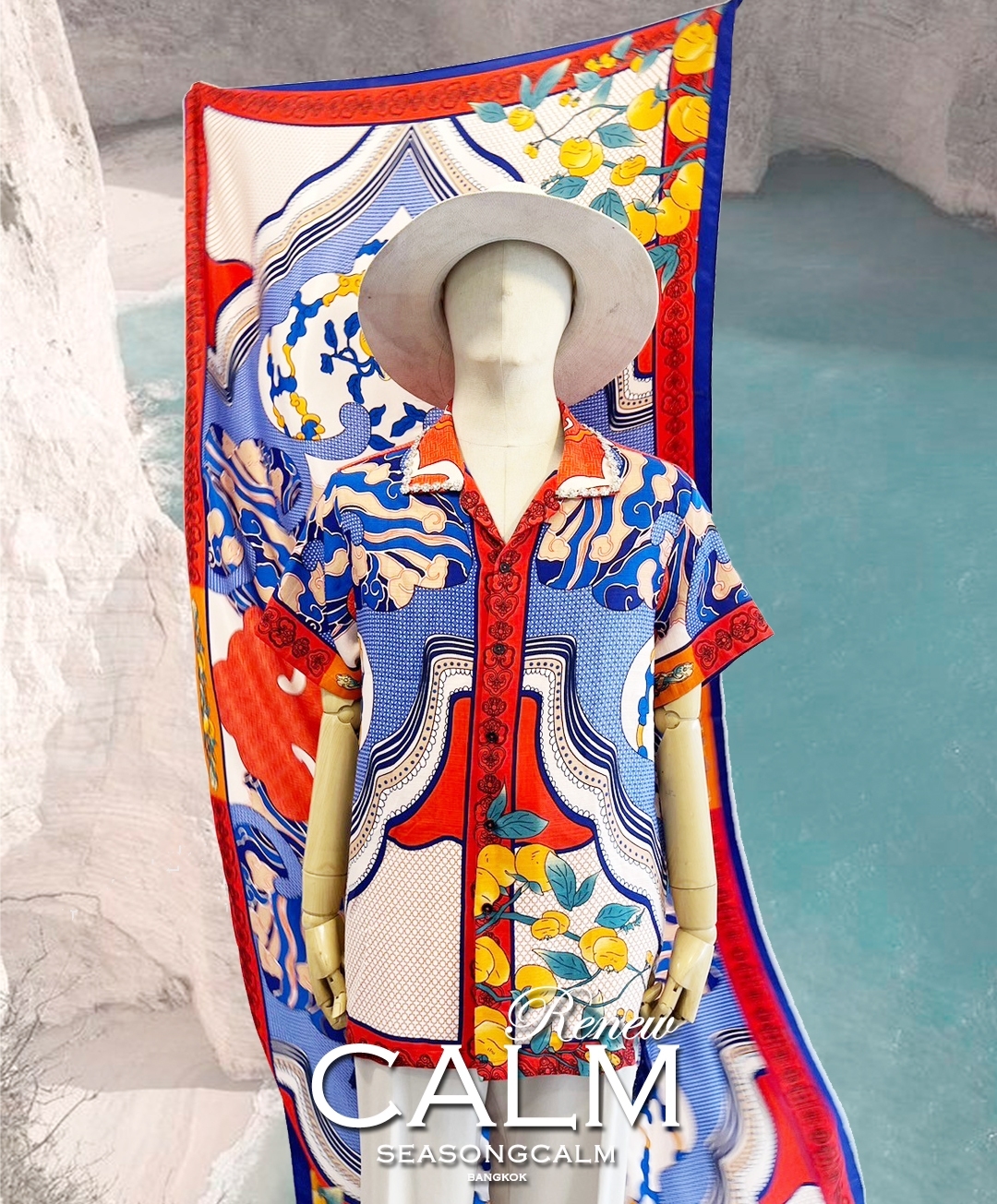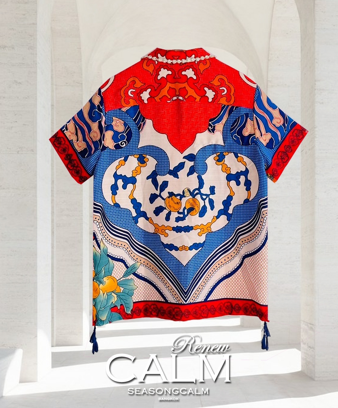 กับลายผ้าที่โดดเด่น พร้อมติดเพรชดอกไม้ตรงปกคอเพิ่มความหรูหรา และยังเป็นเอกลักษร์ของแบรนด์ ซีซองคาล์ม